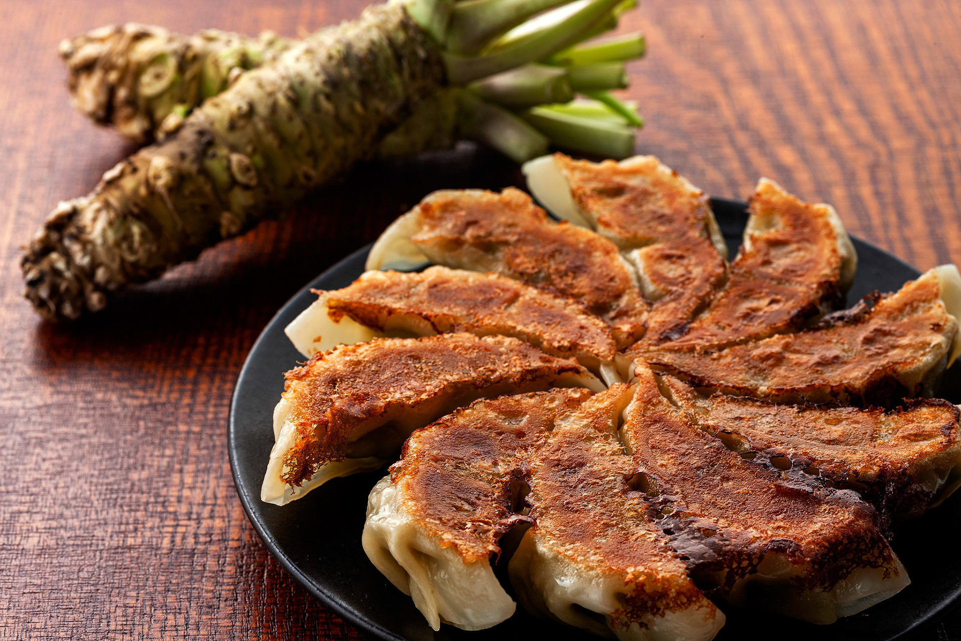 静岡県伊豆月ヶ瀬の特産物「わさび」を使った餃子のパッケージデザイン。